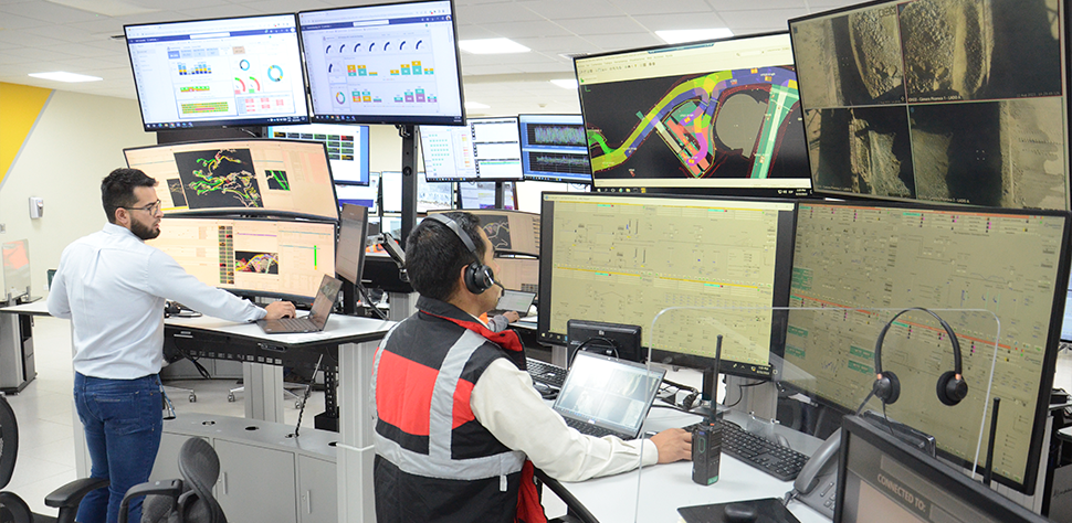 Para ello, contamos con nuestro Centro Integrado de Operaciones (CIO), que controla todos los procesos productivos de Quellaveco y nos proporciona en tiempo real datos de producción, reportes de seguridad, procesos autónomos y mediciones del medio ambiente, entre otros. Procesa, además, enormes cantidades de datos que llegan desde los sensores instalados en toda la cadena productiva. Gracias a este centro, aplicamos la inteligencia predictiva para anticipar eventos.