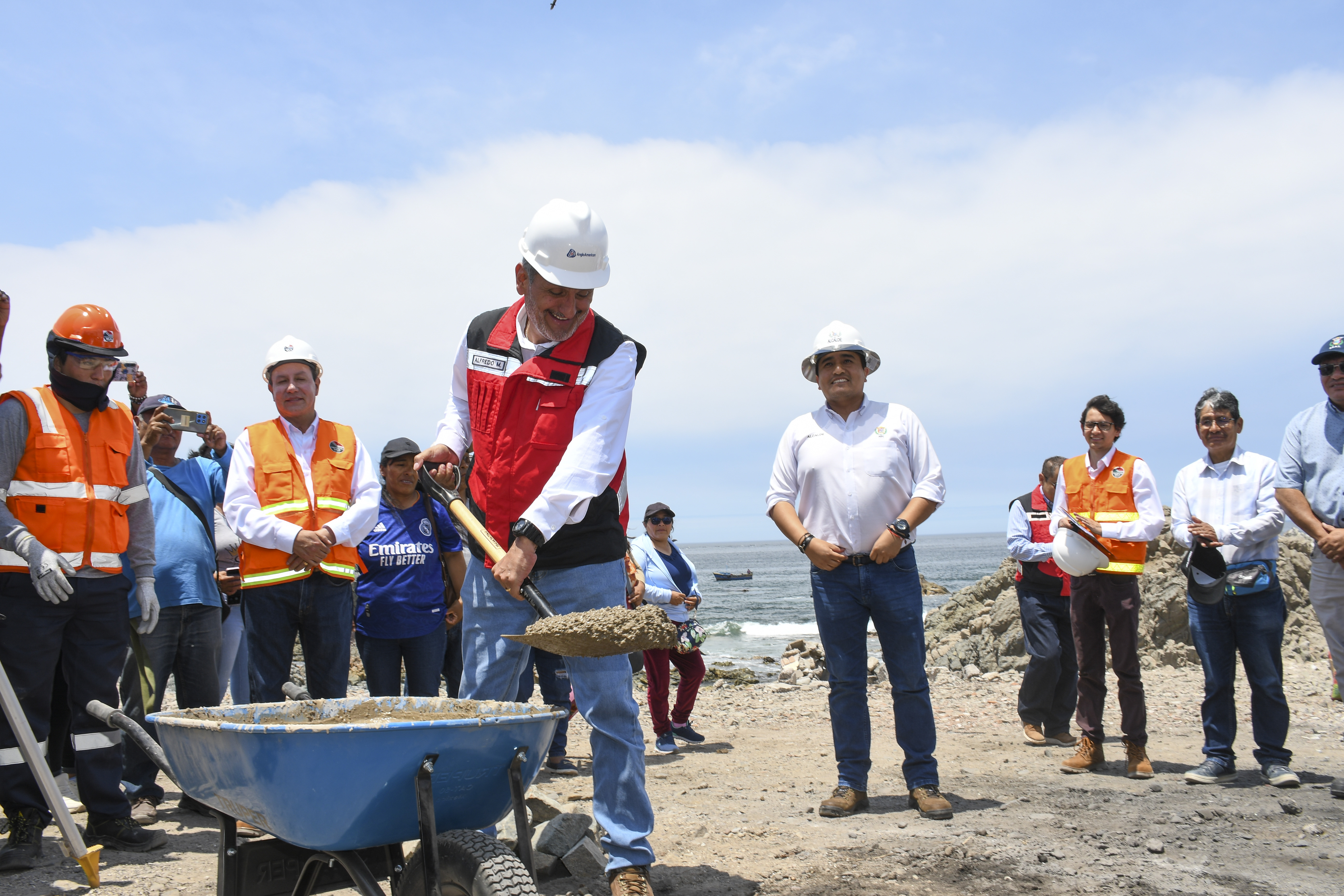 - Primera piedra de la obra fue colocada por el alcalde de Ilo, Humberto Tapia, representantes de la empresa minera y la población.