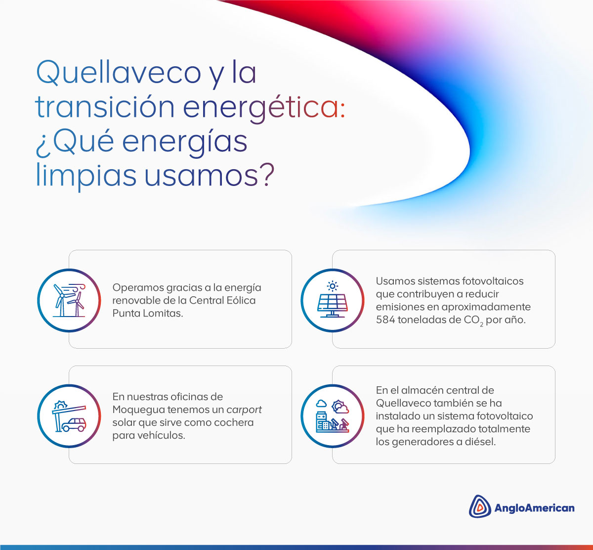 Anglo American, con su operación minera Quellaveco en Moquegua, es un claro ejemplo de cómo la industria puede contribuir a la sostenibilidad. La compañía ha incorporado el uso de energías renovables en sus operaciones y ha avanzado en el uso de herramientas tecnológicas para operar de manera remota, mejorando la eficiencia.