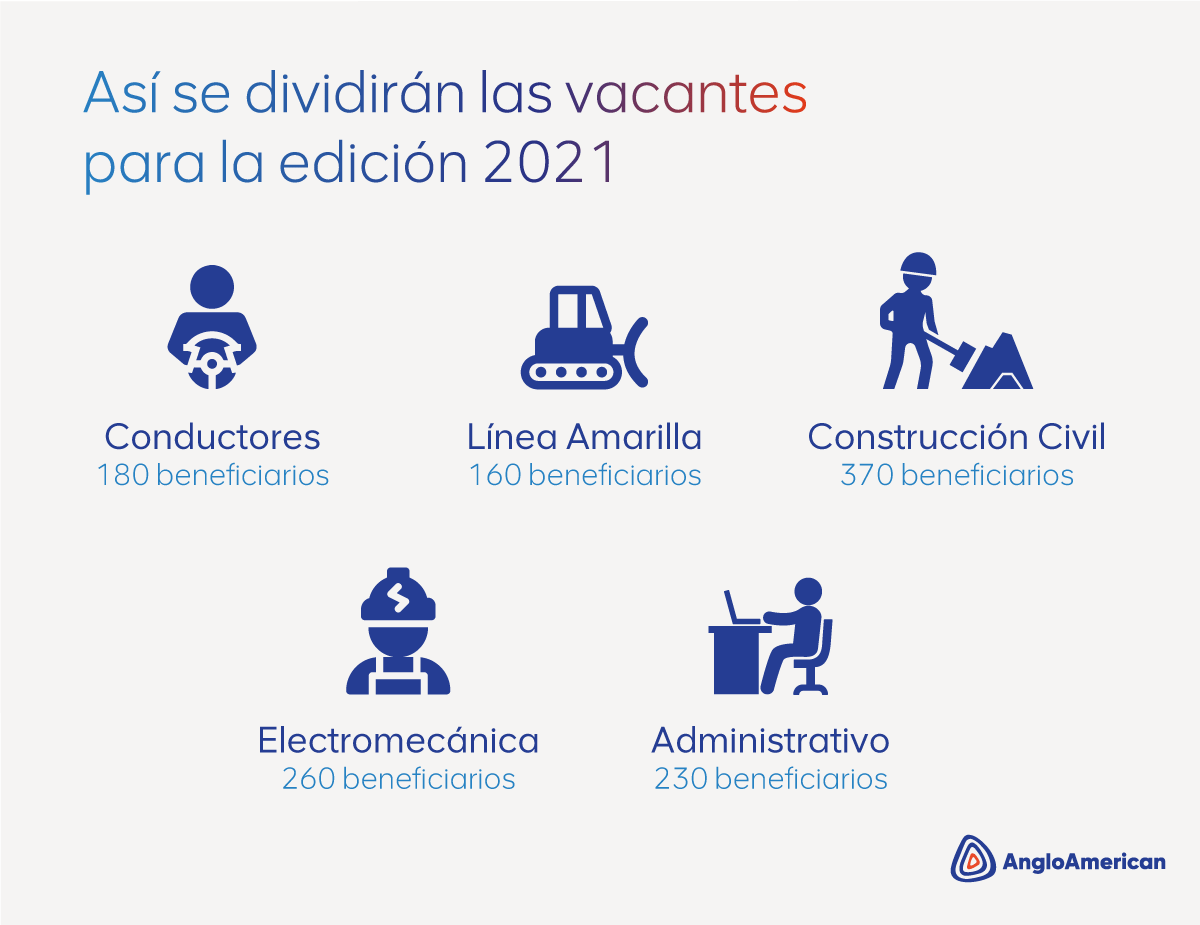 Una gran oferta de cursos muy atractivos y altamente ligados a la demanda de empresas e instituciones conforma la parrilla de este año. Tenemos capacitaciones en electromecánica, construcción civil, Línea Amarilla, conductores y administrativos. De los 50 cursos, 8 son virtuales y se impartirán en la primera etapa del programa, como medida de prevención.
