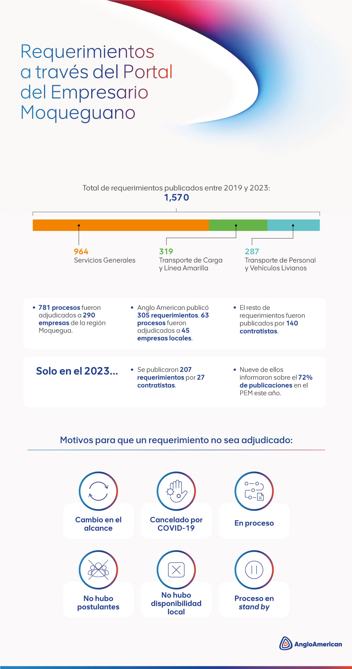Desde su lanzamiento hasta abril del 2023 se han publicado 1,529 requerimientos de bienes y servicios que incluyen la demanda de Anglo American, así como de contratistas que trabajan con Quellaveco.