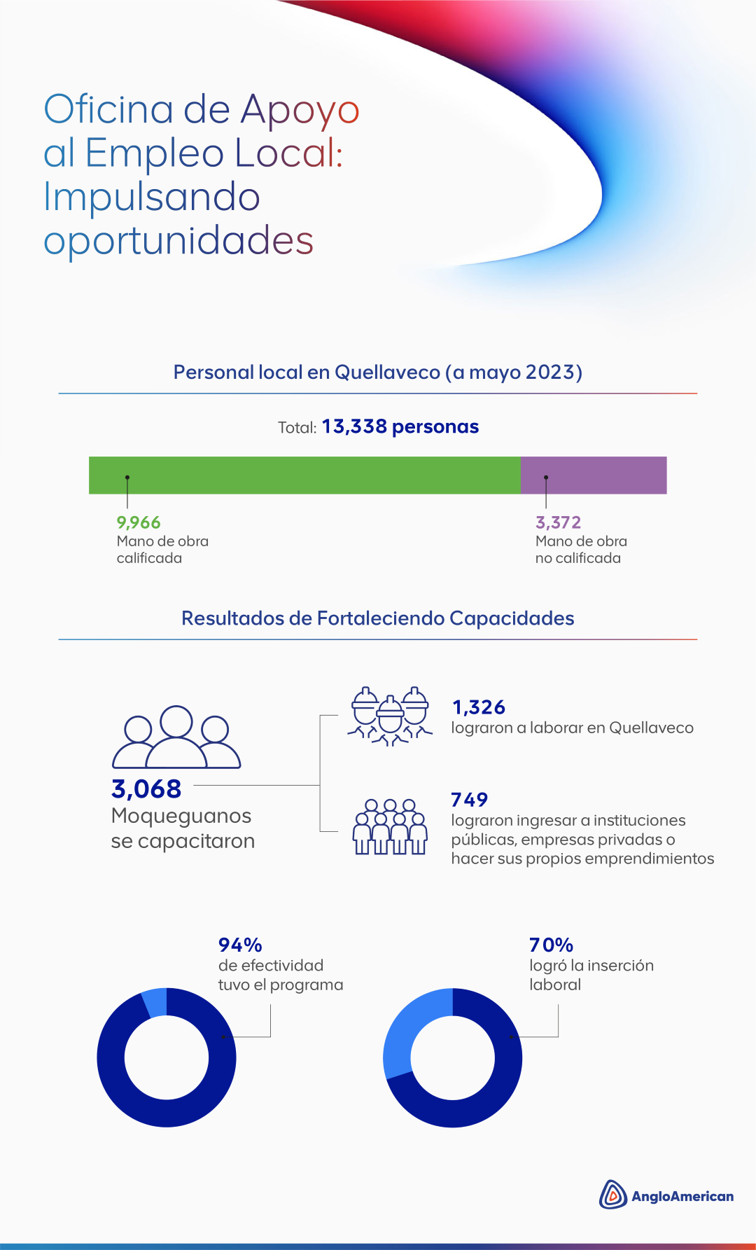 El alcance de esta Oficina destaca también porque entre el 2018 y el 2022, la construcción de la mina Quellaveco fue la principal fuente empleadora de mano de obra y empresas locales en la región Moquegua, incluso durante en los momentos complicados de la pandemia de COVID-19. Hasta mayo del 2023, Quellaveco dio empleo a 13,338 moqueguano que trabajaron, o trabajan, al menos tres meses en la compañia.